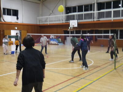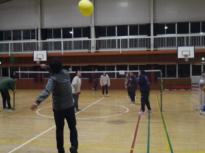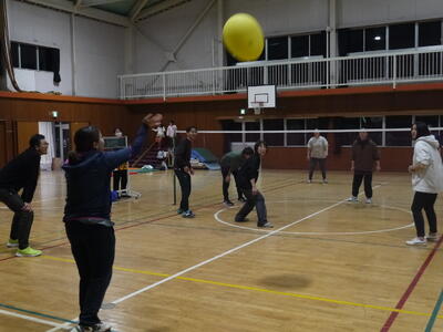 室内のニュースポーツとして人気沸騰中のサイカツボール。誰でもできるバレーボール風なんです。