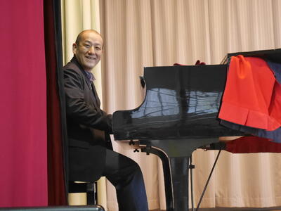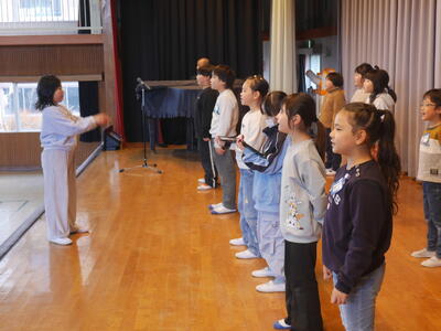 「4年生のようにかっこよく歌ってみたい!」そんな思いから始まった2年生の「ライラック」。「校長先生、昼休みに体育館をお借りしてもいいですか」断る理由がありません!伴奏はもちろんこの先生です!!2年生のオンステージです!