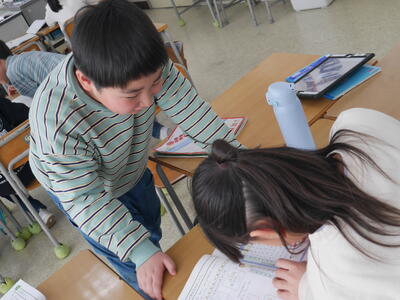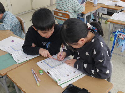 気になれば友達に聞く。気になれば席を立って聞きに行く。すっかり定着しています。はっきりと分からなくても、決まりを説明することが難しくても、自分の理解で解答していきます。「あれ、なんとなく分かってきた~」それでよし!