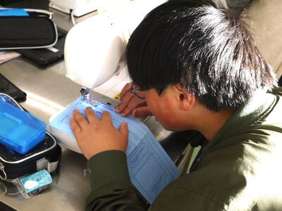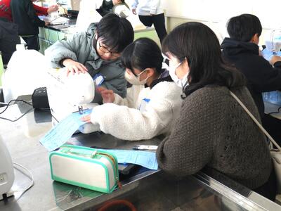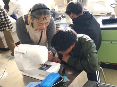 5年生の家庭科。今日はミシンにチャレンジです。ミシンボランティアさんの協力も万全です。本当にありがたいです。