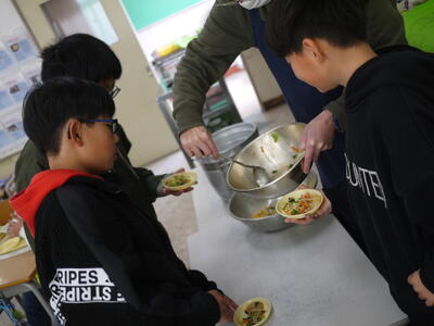お野菜と味噌の素晴らしいマッチング。いつもの給食にプラスワンされていますね。さっそく「ごま和え」のおかわり!
