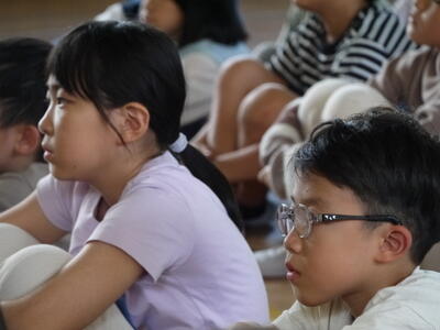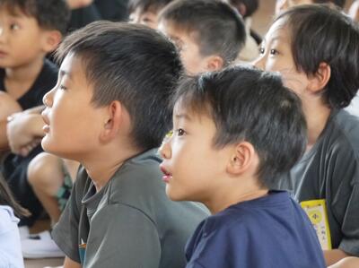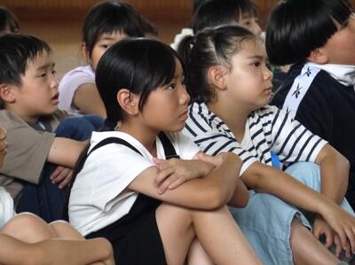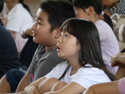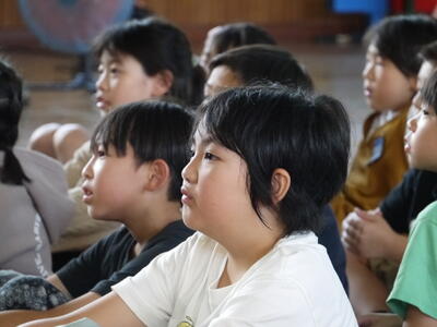 1年生から3年生ですが、話を聞こうとする様子がとってもすばらしい。