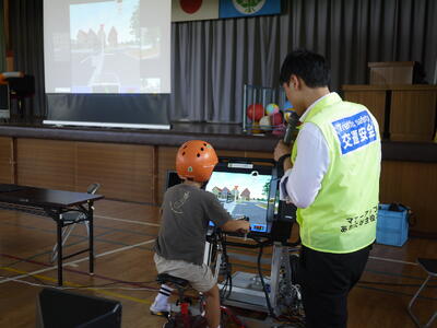 とってもいい学校なんだなぁと思います。後半は自転車シュミレーションを使って実践確認です。