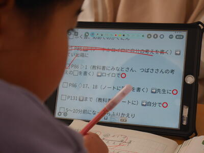 一斉授業や45分授業では得られない「きめ細やかな支援」が実践されています。「ここまで10分でやってください」そんな言葉はこのブロック日課にはありません。十分な時間を使って子供たちは進んで行きます。