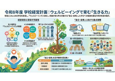 昨年度は子供たちの学びに向かう姿勢や学力を支える力として「自分を高める力」「自分と向き合う力」「他者とかかわる力」である非認知能力の育成を実践の柱として取り組み、子供たちの支援者として、伴走者として何ができるのかを追求してきました。皆様にもお伝えした栃木県教育振興計画2026-2030では、その基本方針の一つに「一人一人のこどもを主語にする教育の実現を目指し、教員に求められる役割をこどもたちの主体的な学びへの効果的な支援・伴走に転換していく」と明確に表記されました。まさに本校が取り組んできた内容だと言えます。