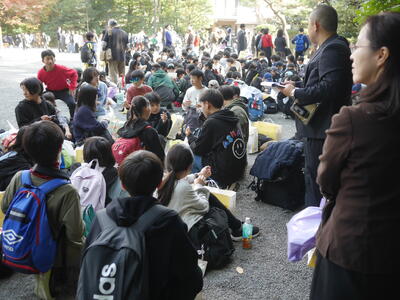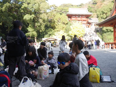 鎌倉八幡宮集合の時間になりました。無事の卒業できるようにお参りします。
