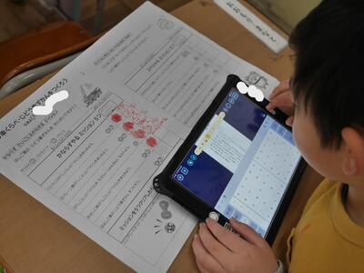 みなさん、これが本校の1年生の学びに向かう表情です。タブレットの使い方なんて6年生に負けてない!!