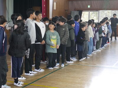 式の最後は今週土曜日に福岡県で行われる「キャッチボールクラッシック全国大会」に挑むNasuAngelsに全員からエールを贈りました。体育委員の皆さん、ありがとうございました。