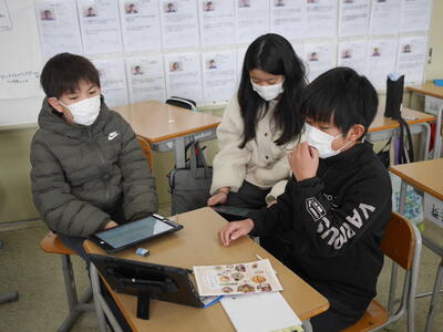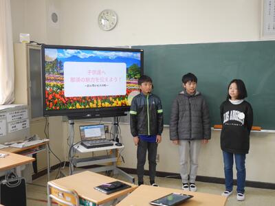 6年生の総合。DMOさんと進めてきた探求も、12月23日にDMO関係者や「じゃらん」さんのを迎えての第一次発表大会に向けて「表現」の学びを進行中。