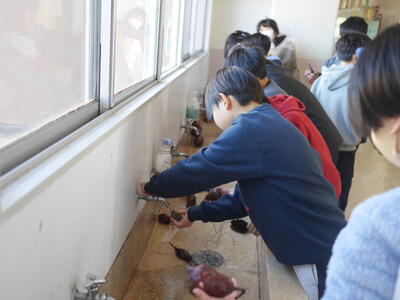 誰かのために動くこと 投稿: 田代友愛小 (11:28) 2年生が校長室にやってきました。「今日ね、5年生と一緒に干し芋つくるんだぁ」「とっても楽しみなんだよ」 て 5年生が2年生のために動いていました。「冷てぇ~!けど、2年生が待ってるんだよねぇ」 誰かのために動けることって、とても大切な事。 2年生のニコニコした顔が見えているんだろうなぁ。午後は外出してしまうので活動の様子は見られないけど、きっと素敵な時間になるだろうね。
