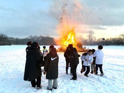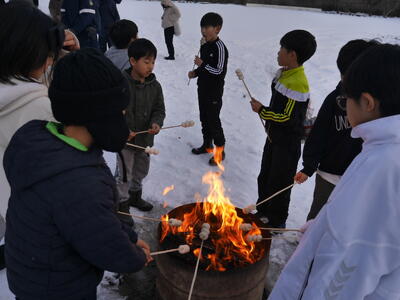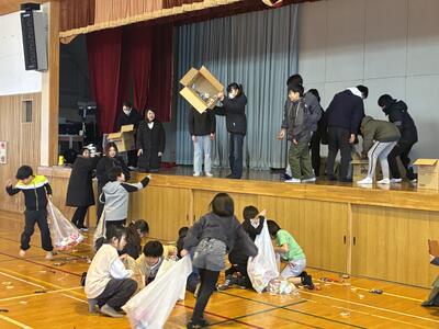 本校学区の室野井地区地域づくり事業「第26回どんど焼き」が行われました。本校の子供たちも大勢参加しました。まずは子供たちが楽しみにしていた「がらまき」です。