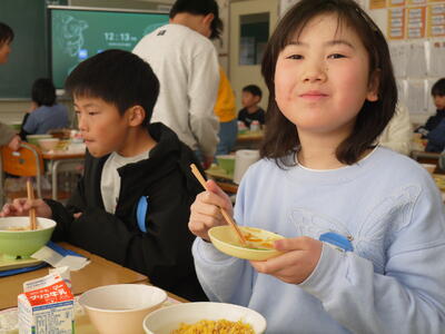 普段の本校給食もとっても美味しいのですが、食材の相乗効果で美味しさも2倍、3倍です。