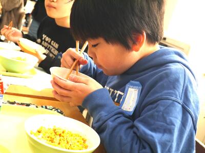 毎日食べる給食だからこそ、野菜の味を味わってほしいのです。一生懸命に食べてくれている3年生を見ていると、もっともっとがんばるぞ!という思いが高くなります。