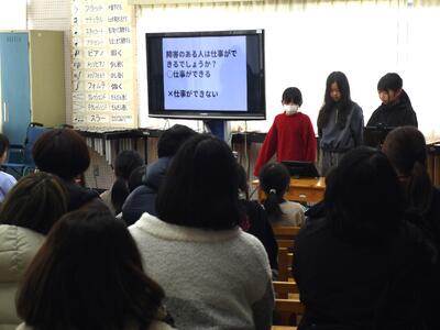 今年度大きく伸びた4年生。この発表も自分たちで考えた結果です。社会福祉協議会の協力もとても大きな糧となりました。