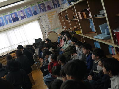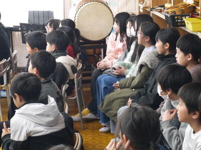 同時間帯発表は4年生。音楽室で実施です。3階から何やら賑やかな声が聞こえてきます。なんと4年生のパフォーマンスの声です。