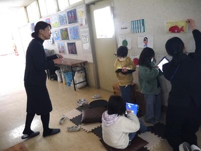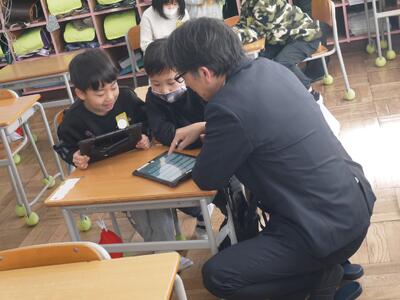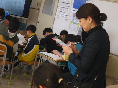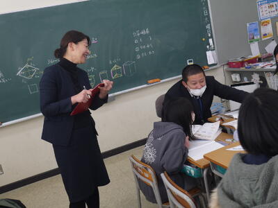 文科省の先生も子供たちに寄り添いながら本校の先生方の授業を参観しました。