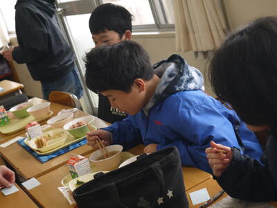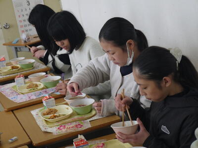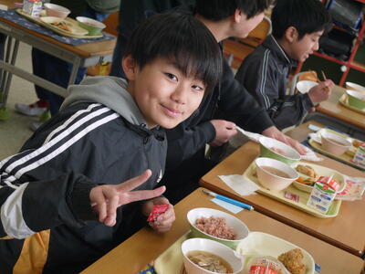 小学校最後の給食。6年間で約1200食を食べたことになる本校自慢の給食です。