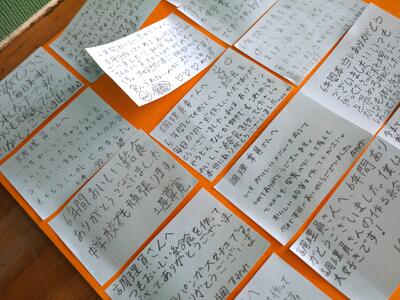 調理員さんからのメッセージ付きのクリーンウエット。6年生は即座に反応します。修学旅行の夕食にメッセージを残した姿が思い出されます。