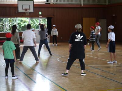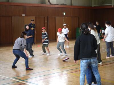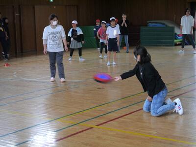 子供たちと一緒のドッジビー。慣れないながらも皆さんの表情はとってもにこやかです。