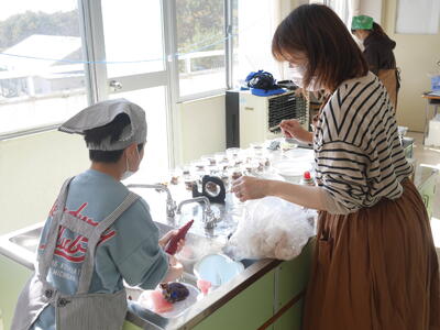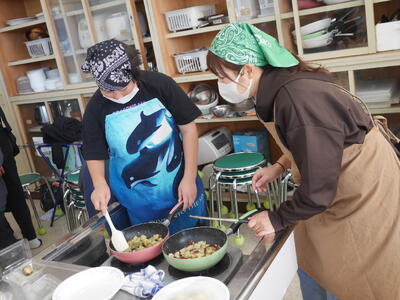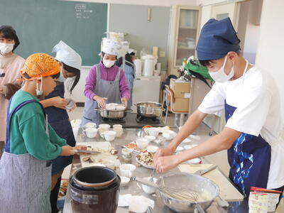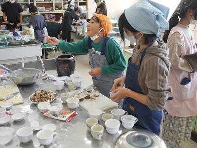 5年生は手際よくどんどんと調理を進めます。美味しそうな「商品」が並んでいきます。