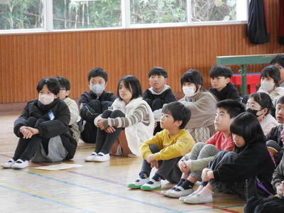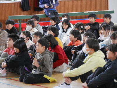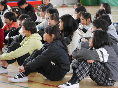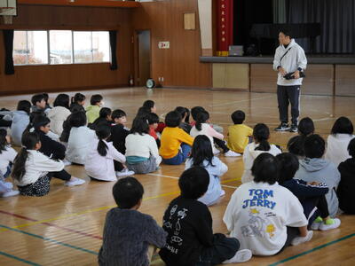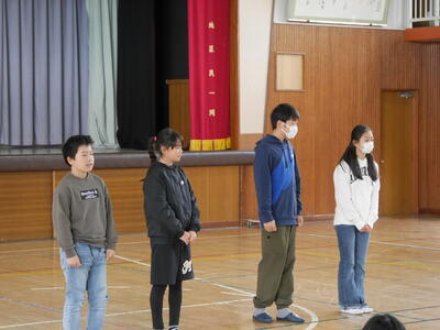朝会のあと、駅伝部解散会が行われました。駅伝部として活動してきた全員が参加です。体育主任さんから感謝の言葉が伝えられます。