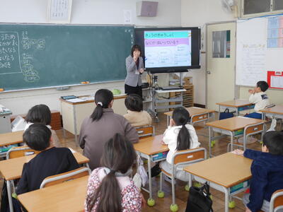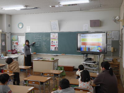 食べるってことはね 投稿: 田代友愛小 (11/11) 1年生の教室で食育の時間です。那須中学校から先生が来てくれました。「食べるってことはね~」 給食の話から、食べるということの大切さまでお話ししてくれました。とっても和やかな雰囲気です。 1年生もにこやかに、そしてしっかり話を聞こうとしていました。 このような話を聞くことも成長に欠かせない時間なんです。今日の給食は残さず食べられるかな。