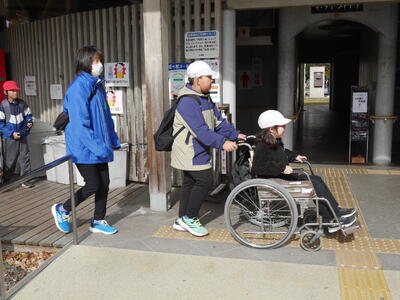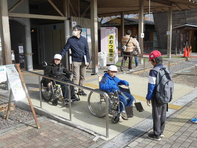 「道の駅にはいっぱい福祉があるよ」机上では分からない「実際」に触れています。しかも実際に車椅子に乗っているので説得力がありますね。