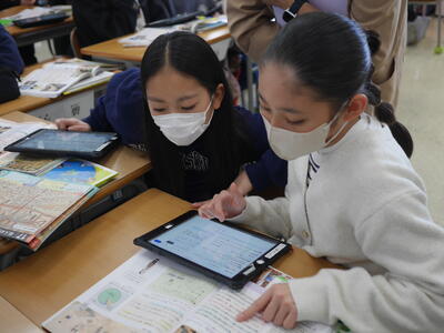 社会科の「江戸時代の文化」。自分のテーマにそって各自が進めます。学び合いはできるの?机の配置から学ぶ相手も自分で選択し自己決定していますが、学び合いがすごい!