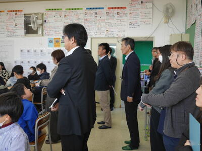 今日は6年生の教室で研究授業です。教育長さんや管理主事さん、指導主事さんをはじめ他校の先生方も参観です。