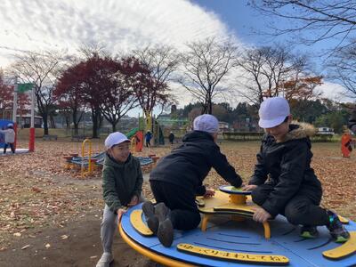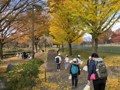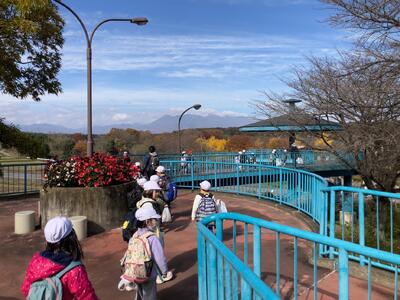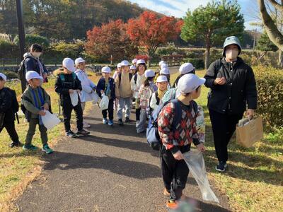 1年生の秋探検隊。深まる秋を見つけに那須塩原市の河畔公園に行きました。
